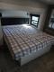 The kitchen in the Eagle is designed for culinary exploration, featuring reliable GE appliances, including a stove with an edge-to-edge grate and an easy-to-clean oven. The innovative all-in-one sink serves multiple functions, offering versatility for both preparation and cleanup. Ready for outdoor cooking? The optional Halo Griddle is perfect for your adventures, featuring a windproof design, dual-zone burner, and a temperature range from 300 to 500 degrees—perfect for grilling whatever inspires you. And when the weather shifts, the foldable dinette chairs and pivoting table with an outlet below let you quickly turn the indoor office space into a cozy dining area. Set the perfect ambiance with the "Blue Sync" audio system and MB Quart speakers, delivering high-quality sound for any setting.