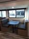 Inside, you’ll find solid hardwood cabinet doors with hidden hinges, giving the space a modern, residential feel. Oversized cabinets and under-bed storage ensure there’s room for everything you need, while the lit exterior passthrough storage makes packing and unpacking a breeze.