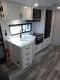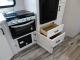 Inside, you’ll find solid hardwood cabinet doors with hidden hinges, giving the space a modern, residential feel. Oversized cabinets and under-bed storage ensure there’s room for everything you need, while the lit exterior passthrough storage makes packing and unpacking a breeze.